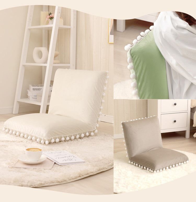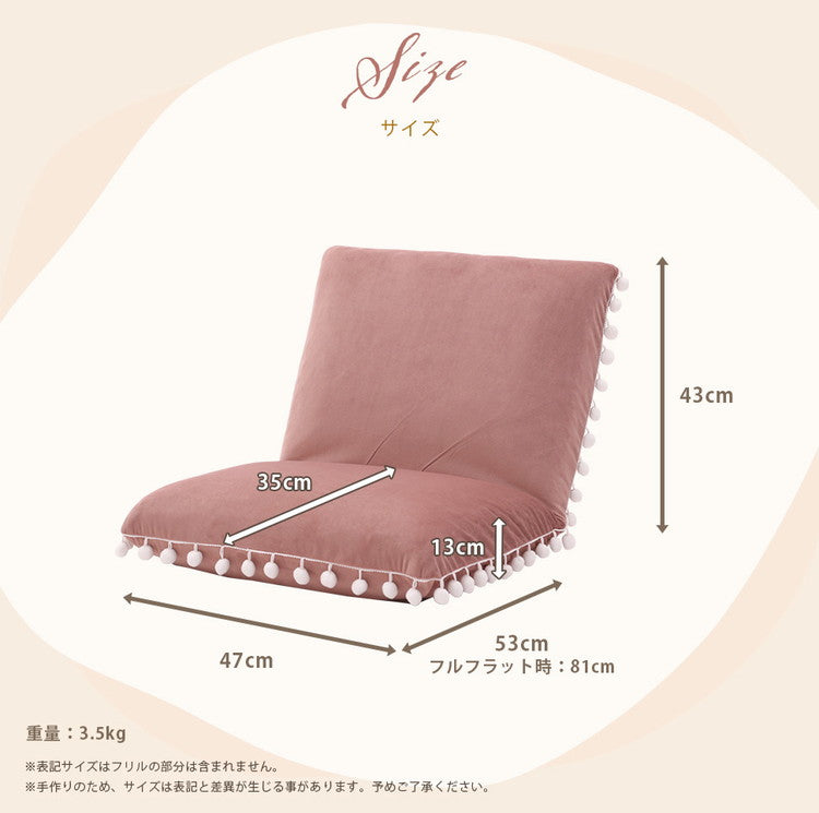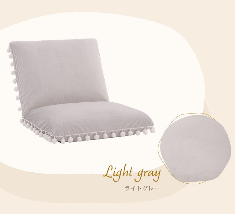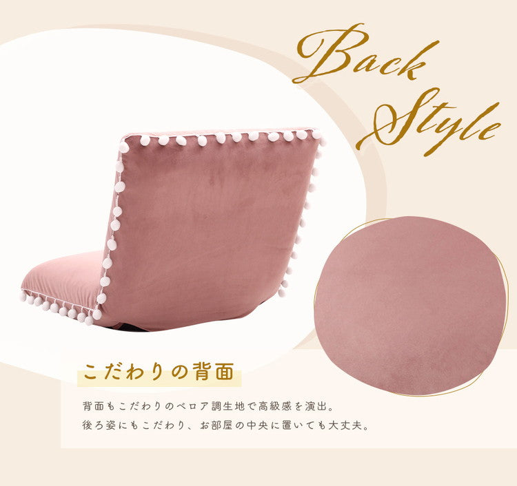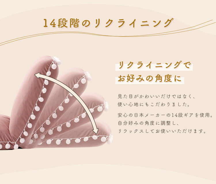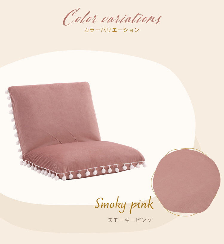 座椅子 ベロア調 ポンポン コンパクト 日本製 リクライニング 14段階 一人暮らし リビング ワンルーム インテリア おしゃれ かわいい 北欧 国産 フロアチェア イス いす 椅子 おうち時間(代引不可)