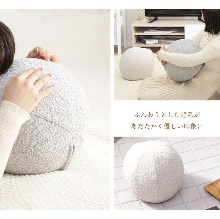 ふんわりとしたもこもこのブークレ生地のボールクッションです。