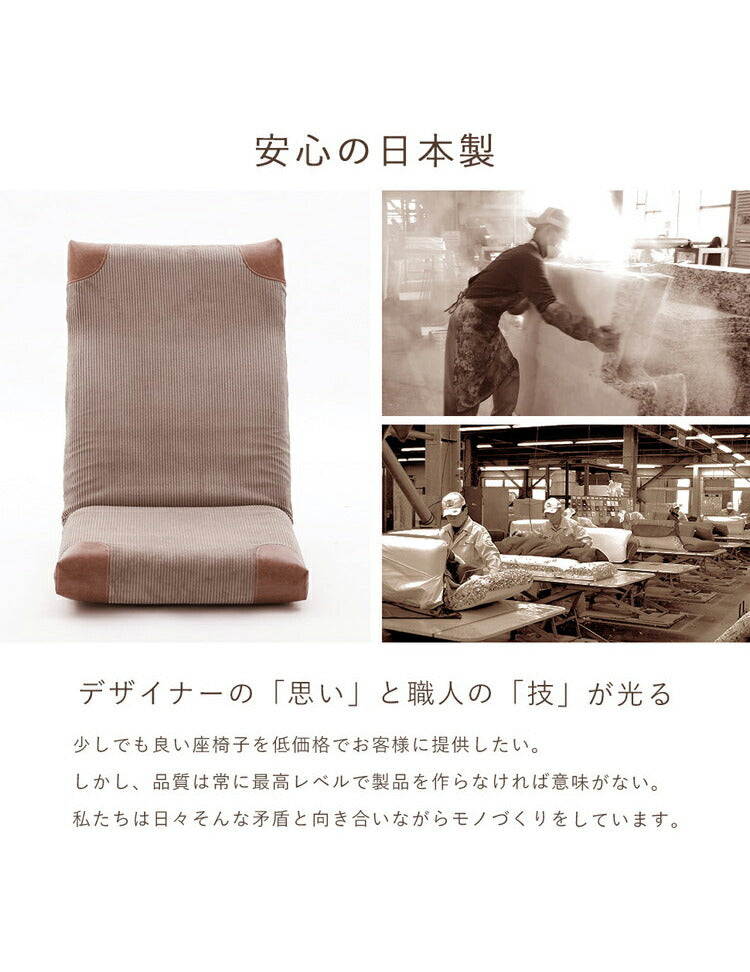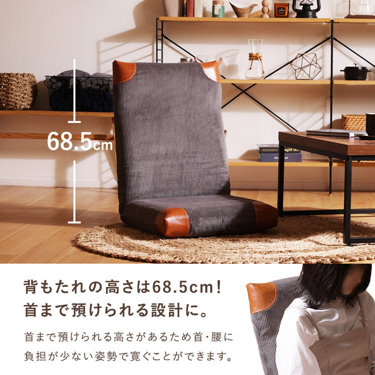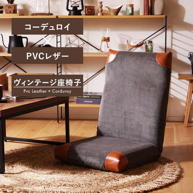 座椅子 ヴィンテージ コーデュロイ 日本製 PVC 合成皮革 ハイバック リクライニング 北欧 インテリア かわいい おしゃれ 座いす 国産 ウレタン コンパクト 収納 疲れにくい リラックス 昼寝(代引不可)