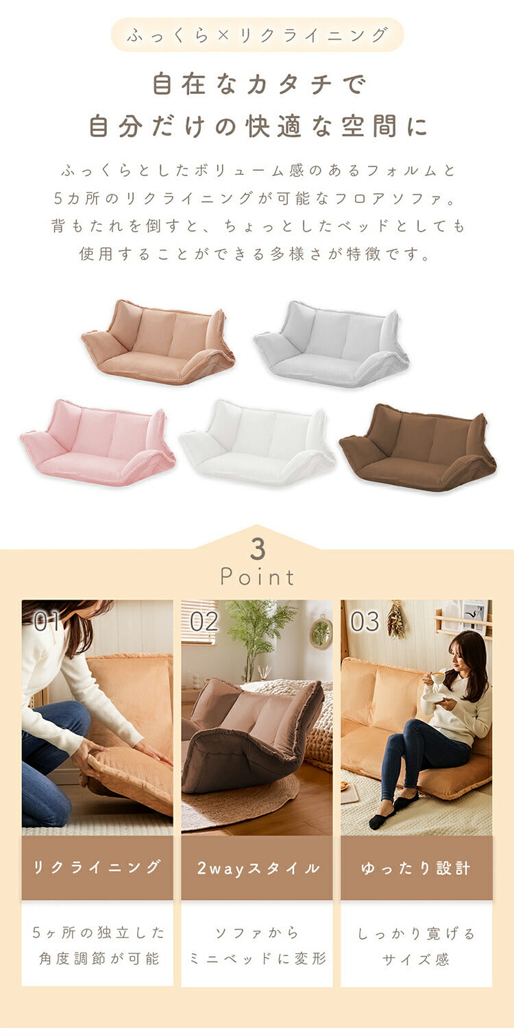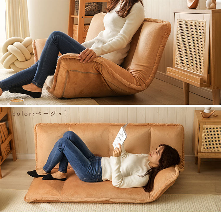 ふっくらとしたボリューム感のあるフォルムと5ヵ所のリクライニングが可能なフロアソファ。