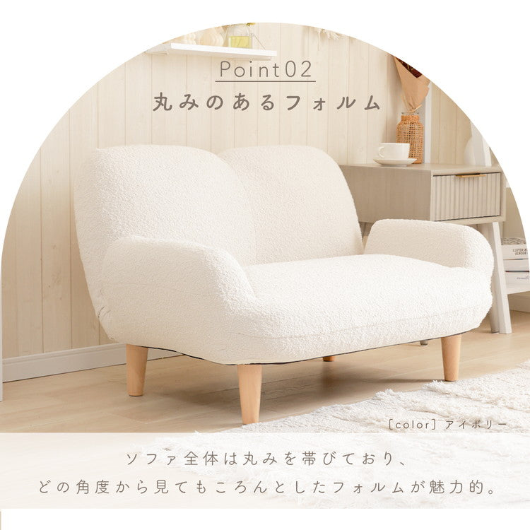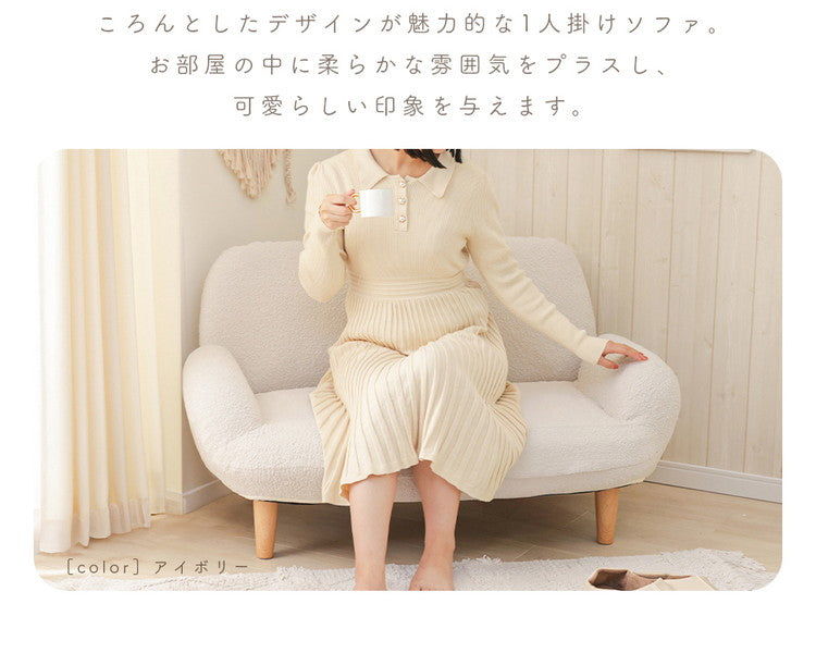 ソファ全体は丸みを帯びており、どの角度から見てもころんとしたフォルムが魅力的です。