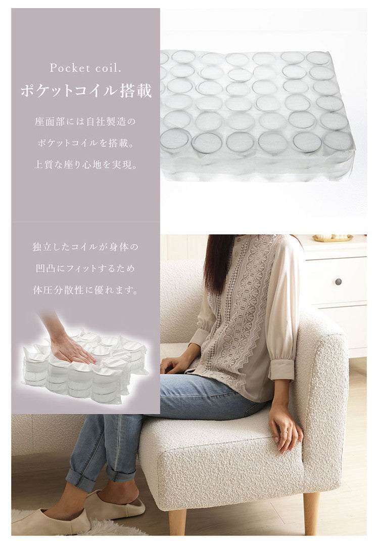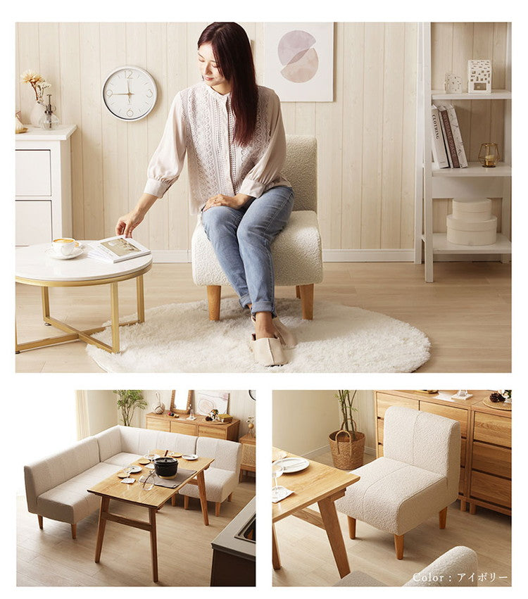 ダイニングソファ ブークレ生地 日本製 一人掛けソファ ブークレ 背もたれ 脚付 レイアウト自由 シンプル 淡色 モコモコ ふんわり おしゃれ ゆったり 1P 国産 ソファー ソファ 単品(代引不可)