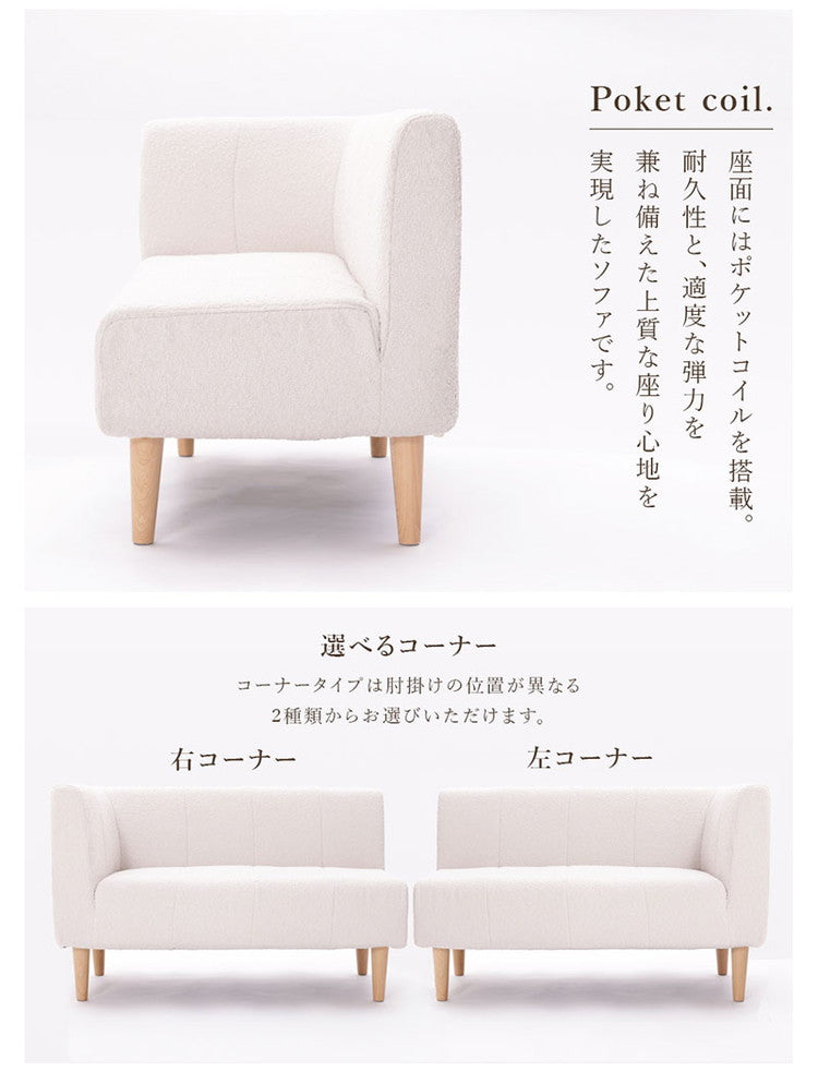 ダイニングソファ コーナーソファ ブークレ生地 日本製 二人掛けソファ 肘掛け ブークレ 背もたれ 脚付 レイアウト自由 シンプル 淡色 ふんわり おしゃれ ゆったり 2P 国産 ソファ ソファー(代引不可)