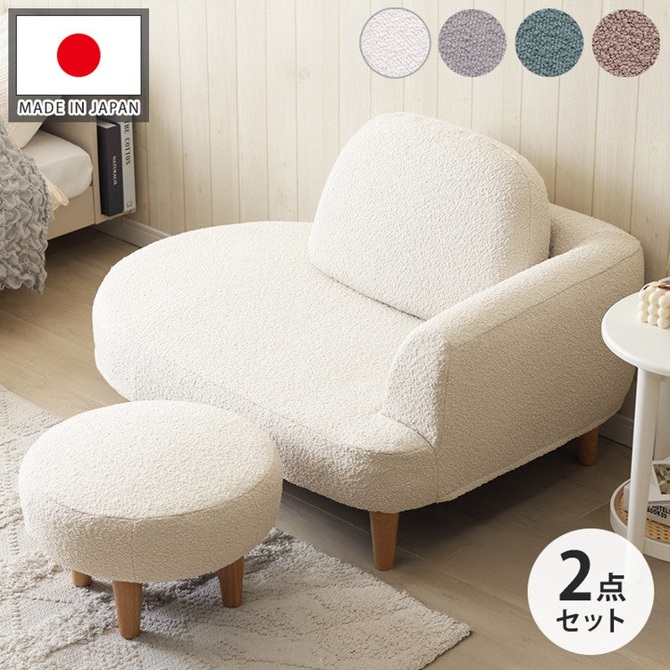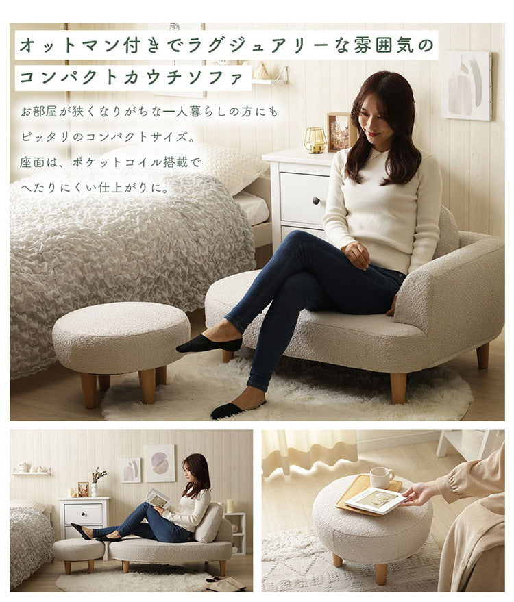 コンパクト カウチソファ ブークレ生地 日本製 一人掛けソファ ブークレ オットマン付き 脚付 ローソファ シンプル 1人暮らし ワンルーム ふんわり おしゃれ ゆったり 1P 国産 ソファー ソファ(代引不可)