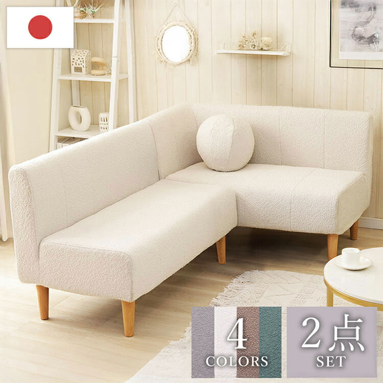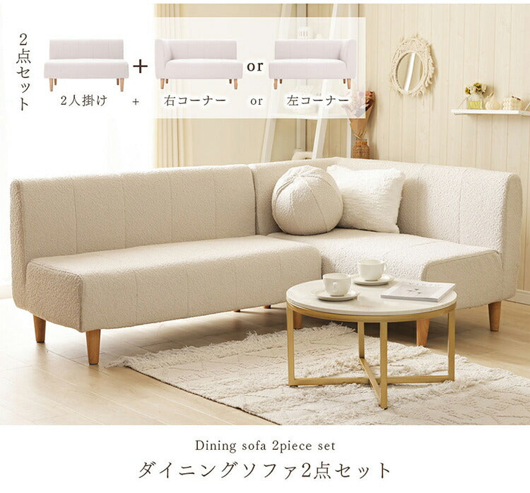 ダイニングソファ 2P+コーナーセット ブークレ生地 日本製 コーナーソファ 二人掛けソファ 2点セット 肘掛け 背もたれ 脚付 レイアウト自由 シンプル おしゃれ もこもこ セット 国産 ソファー(代引不可)