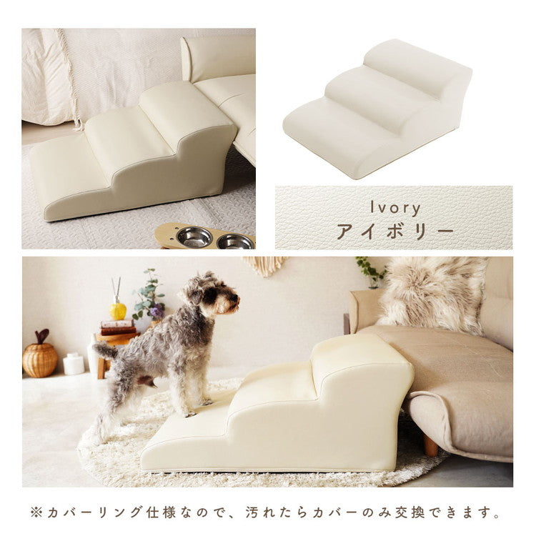 ドッグステップ 3段 ワイド 幅広 PVC生地 日本製 ベッド ソファ 上り下り 階段 段差 犬 ペット 犬用 愛犬 室内犬 ペット用品 ステップ 汚れに強い ソファー ソファ 国産 三段(代引不可)