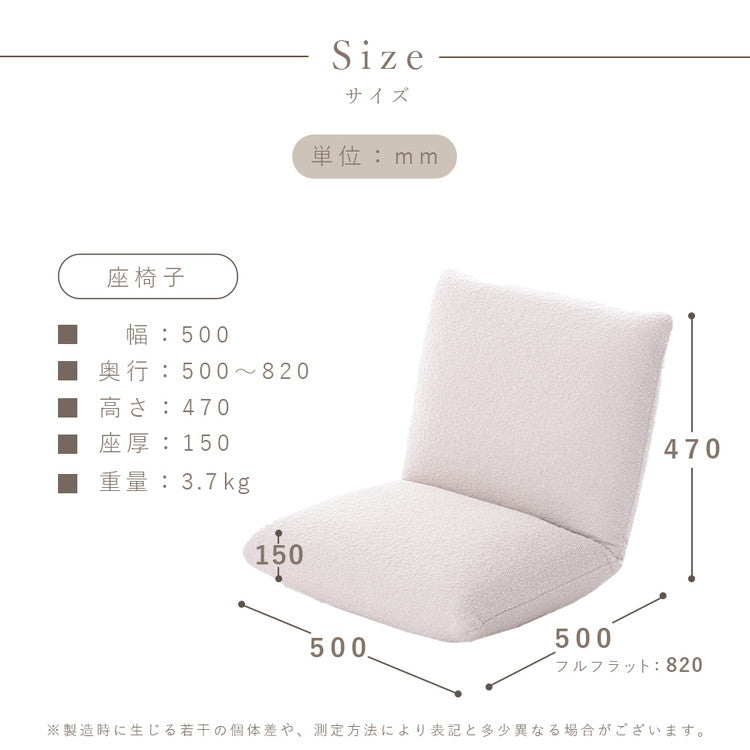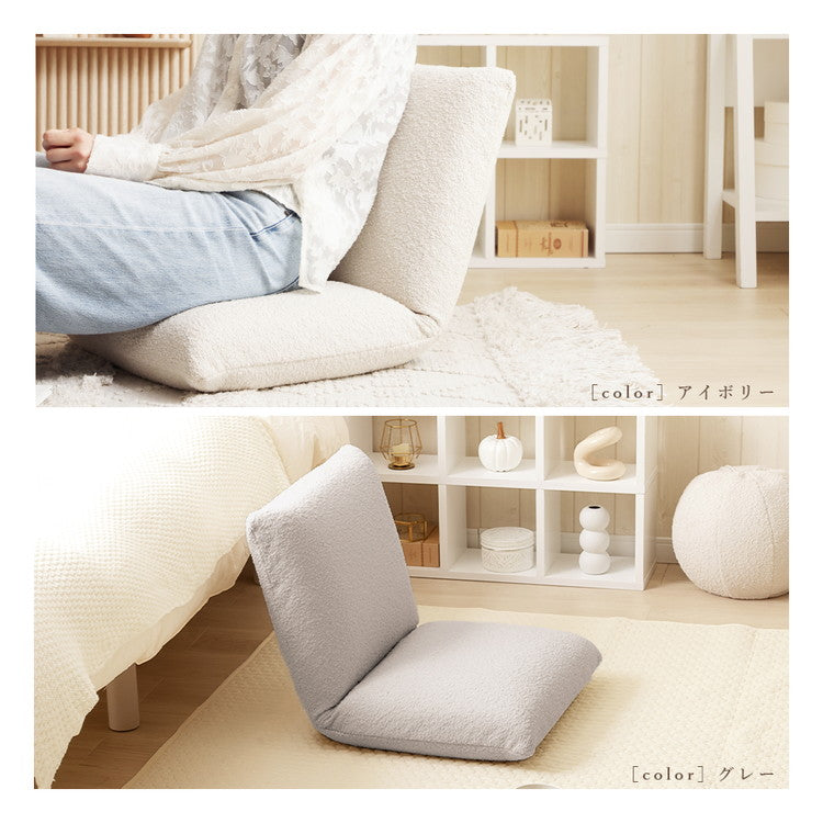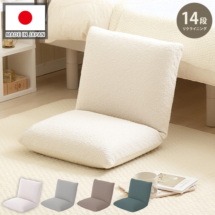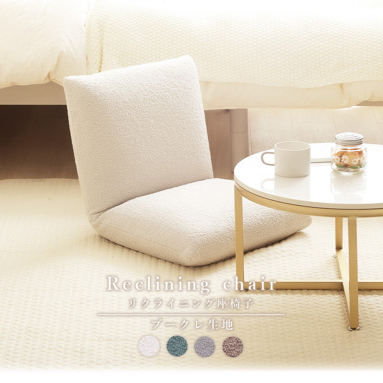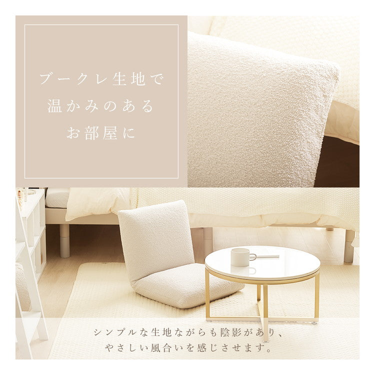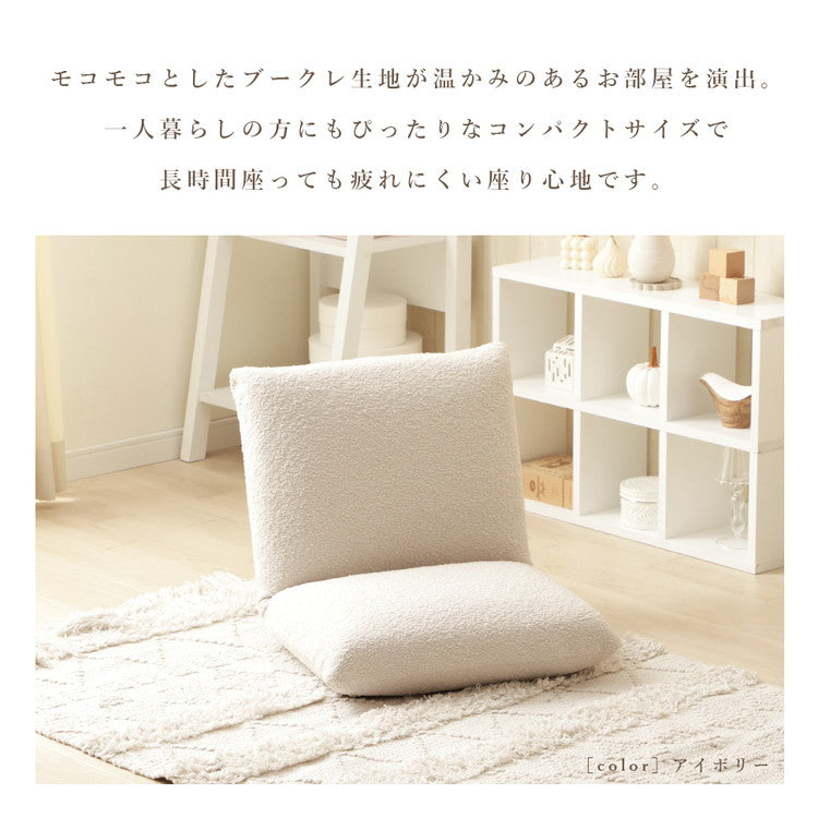 座椅子 ブークレ生地 日本製 疲れにくい 14段階 リクライニング コンパクトサイズ シンプル ブークレ おしゃれ かわいい モコモコ ふんわり 一人暮らし ワンルーム 国産(代引不可)