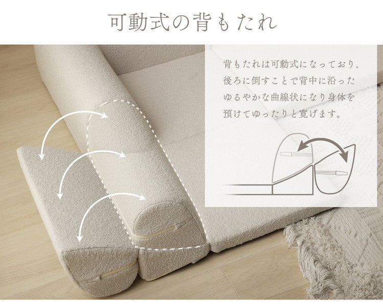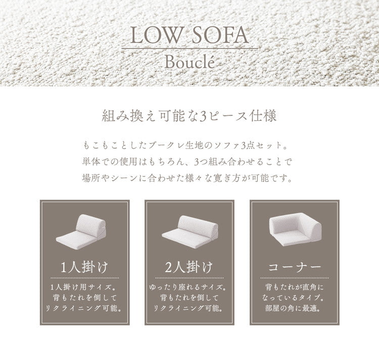 フロアソファ ローソファ ブークレ生地 3点セット 日本製 リクライニング 組み換え自在 ロースタイル ブークレ レイアウト自由 昼寝 シンプル おしゃれ モコモコ ふんわり 国産(代引不可)