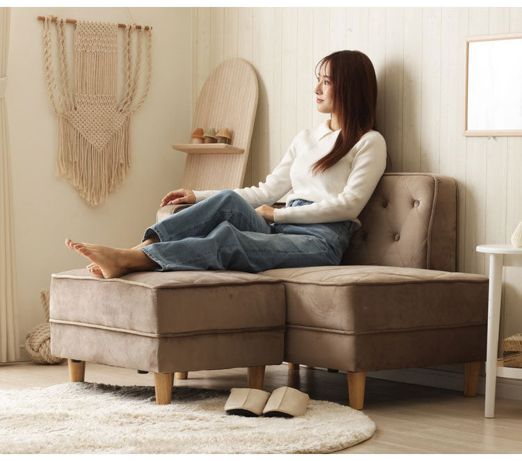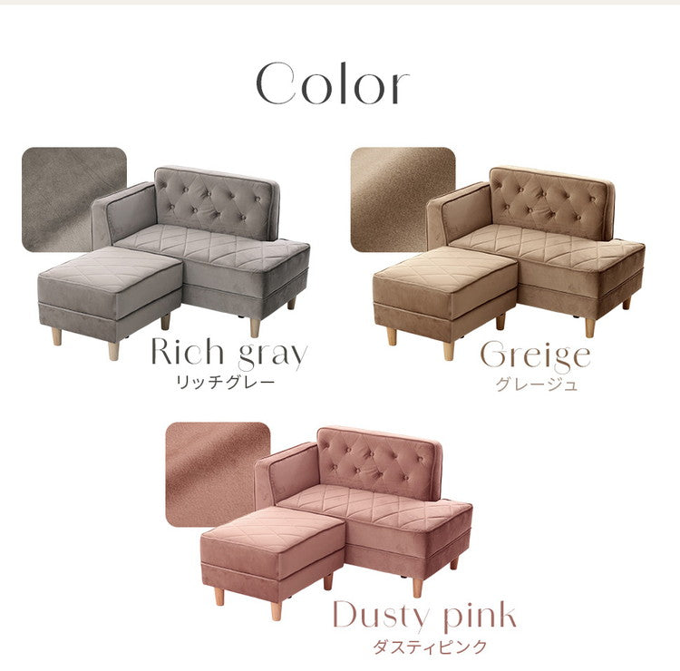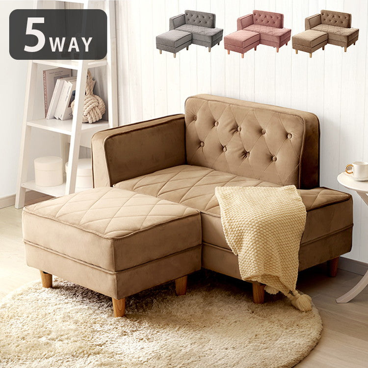 コンパクト カウチソファ オットマン付き ベロア調 1台5役 5wayソファ ワイド コーナー ローソファ セパレート ワンルーム 一人暮らし おしゃれ ふんわり ソファ ソファー ベロア(代引不可)