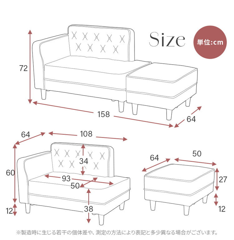オットマンのみ:(約)幅50×奥行64×高さ39(cm)