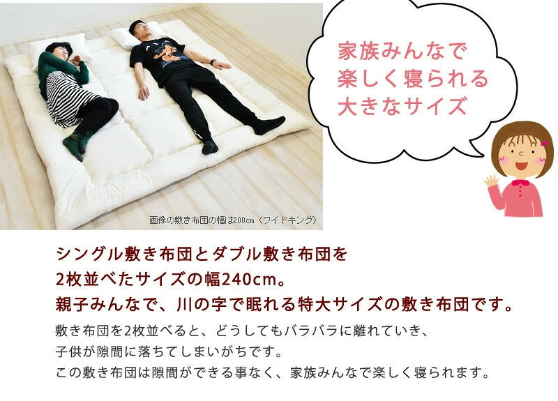 日本製 防ダニ 大きな敷き布団 ファミリーサイズ 240×200cm 敷布団 敷ふとん しき布団 抗菌防臭わた 帝人 マイティトップ使用(代引不可)