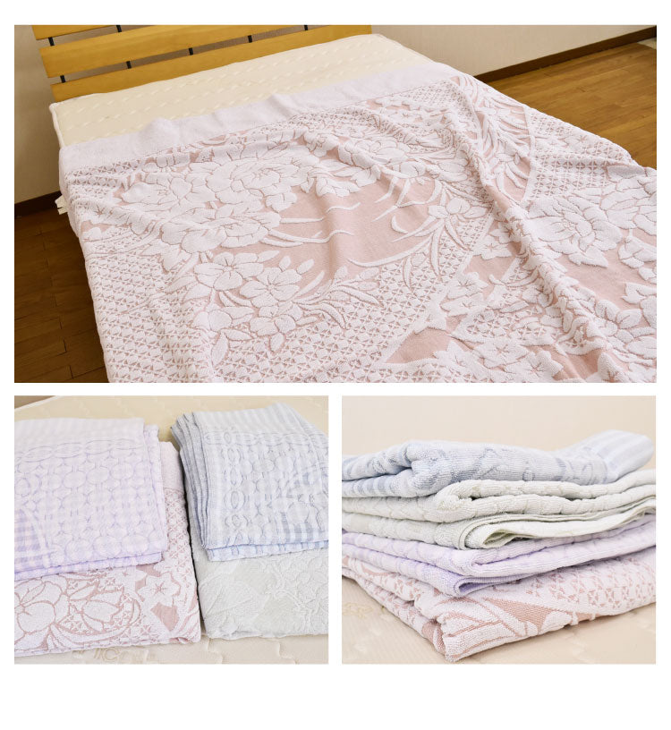 日本有数のタオル産地の愛媛・今治で生産したジャカード織タオルケットです。