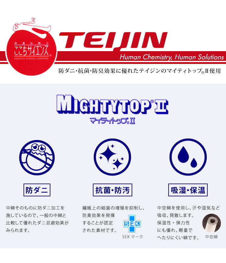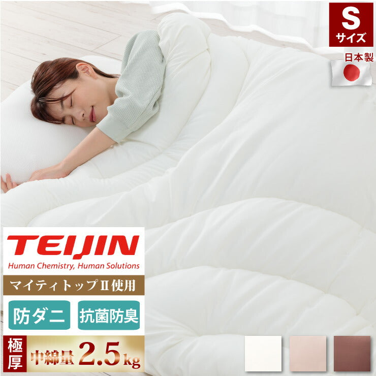 抗菌防臭防ダニ加工掛け布団、ボリュームMAX、中綿2.5kg、帝人、テイジン、teijin、マイティ、国産、冬、あったか