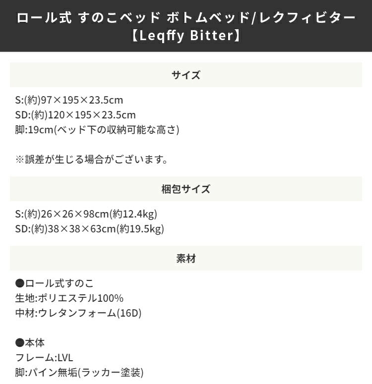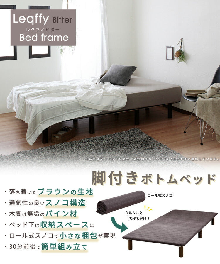 マットレスセット ベッド シングル S ロール式 選べる マットレス付き ベッドフレーム 脚付きベッド マット付 すのこ構造 巻きすのこ 簡単 組立て Leqffy Bitter/レクフィビター ボトムベッド(代引不可)
