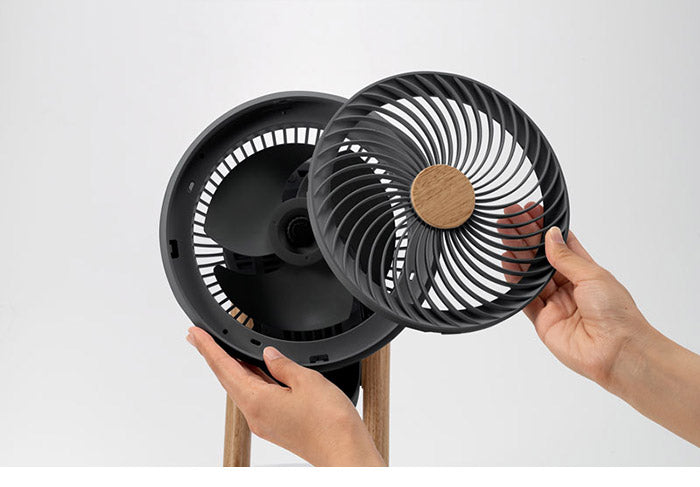 お部屋のサイズや設置位置に合わせて効果的な空気循環を実現します。また握りやすい取っ手を兼ねた木目フレームデザイン採用により、持ち運びしやすく使用シーンに合わせた移動も簡単です。