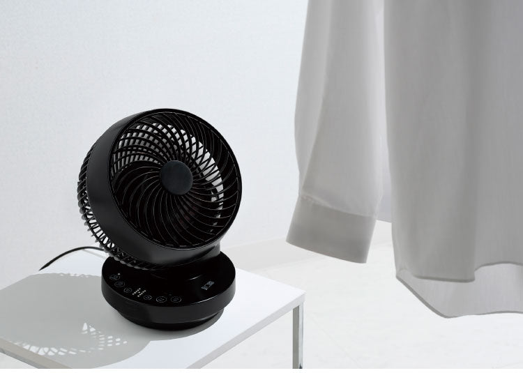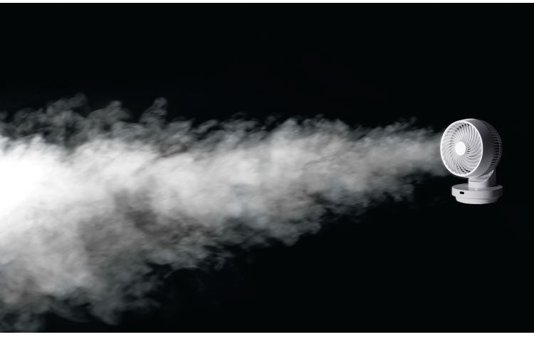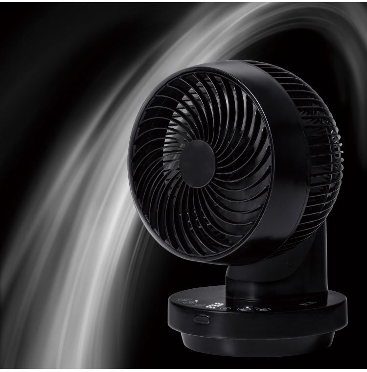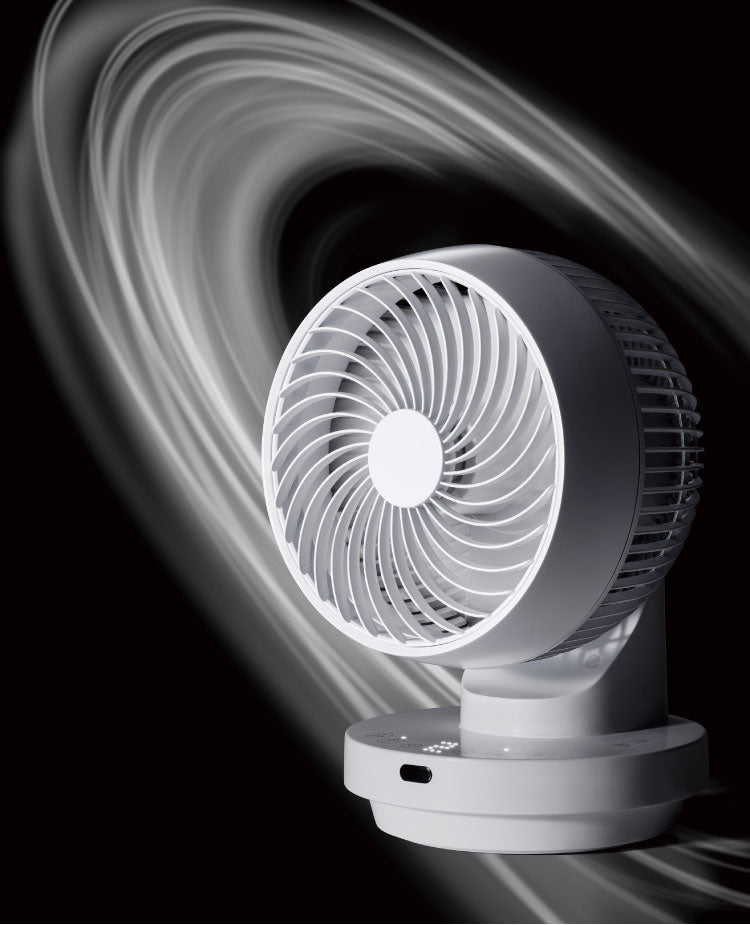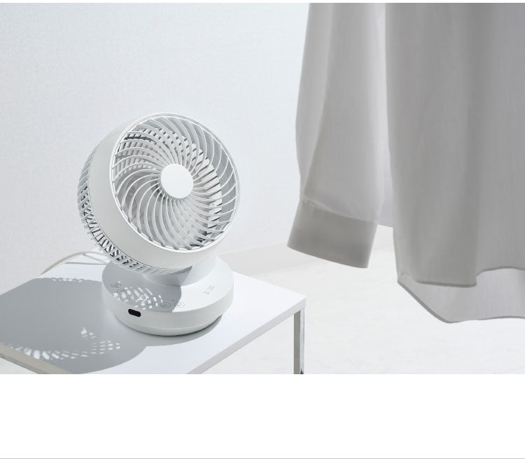 上下左右360°の立体的な首振りでお部屋の隅々まで強力な風を届けることができるコンパクトサイズの多機能DCサーキュレーター。