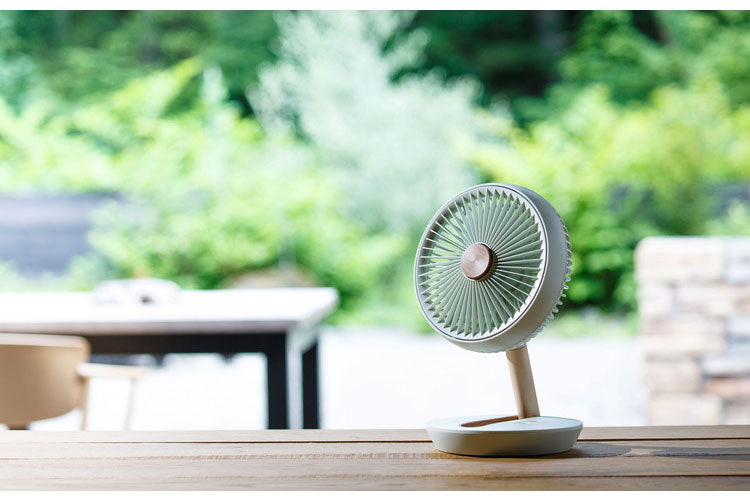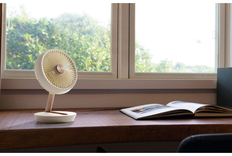 シーズンオフでも置き場所に困らず折りたたんで収納できる充電式デスクファンです。オフィスのデスクやキッチンなどのちょっとしたパーソナルスペースでの使用に最適なコンパクトサイズで、折りたためば手軽に持ち運ぶことができます。充電式なので電源コードを気にせず、コンセントがない場所でも使用できます。上下風向きは自由自在に調整できるのでお好みのスポットに風を送ることができます。