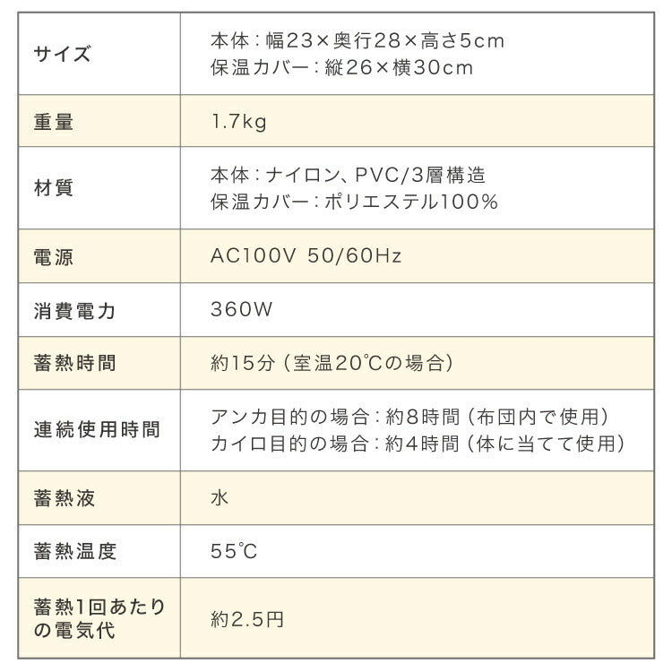 (本体)幅23x奥行28x高さ5cm、(保温カバー)縦26x横30cm