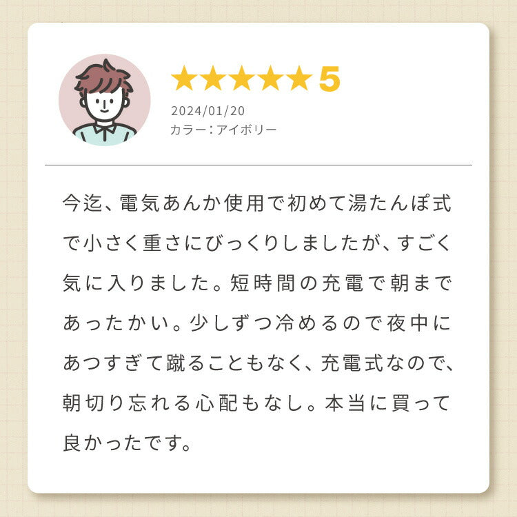 お風呂に入っている間や寝る前に15分間蓄熱しておけば、朝までぬくもりが持続するのも嬉しいポイントです。