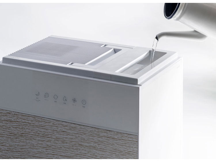 給水は本体を持ち運びすることなく、上部給水が可能。湿度設定、のど・肌モード、パワフルモード、静音モードと機能も充実。
