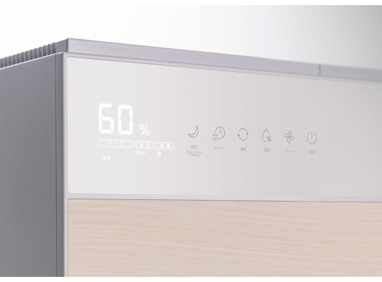 LEDディスプレイ搭載で40%~75%の湿度自動コントロール機能でお好みの湿度に設定することができ、常に快適な湿度を保つことができます。
