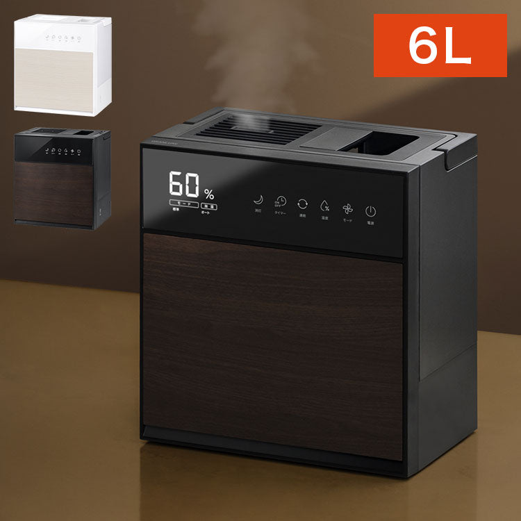 ハイブリッド式 加湿器 6L 大容量 上部給水 リモコン付 グランリュクス HB-T2268 木目 抗菌 最大500ml/h 6.0L 14畳適応 超音波 ヒーター スリーアップ THREEUP