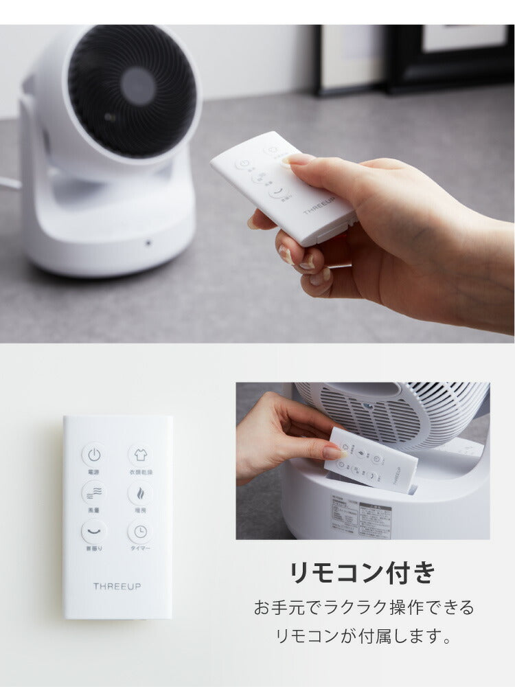 スリーアップ 衣類乾燥 コンパクト サーキュレーター HC-T2209 ヒート クール ホワイト 小型 温風 暖房 送風 衣類乾燥機能付 空気循環 室内干し 物干し