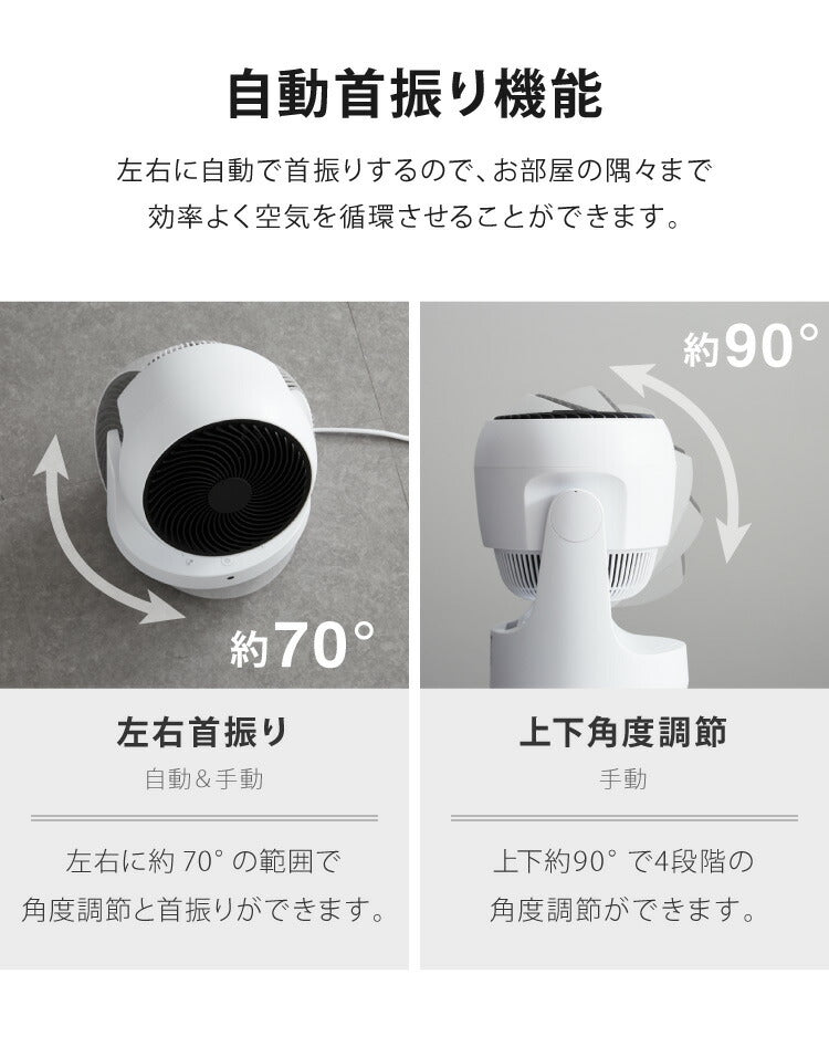 左右70°(自動)上下90°4段階(手動)