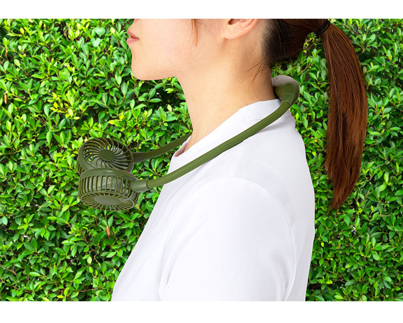 充電式 USB ネックファン HD-T2009 ネックツインファン スリーアップ ハンディファン ハンズフリー 扇風機 首掛け 小型扇風機 カーキ 熱中症対策 涼しい ひんやり グッズ 暑さ対策 冷風機