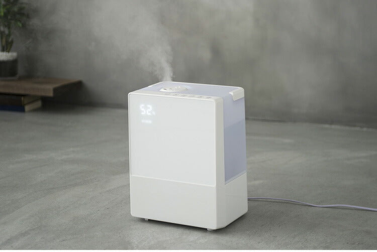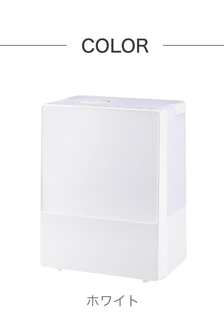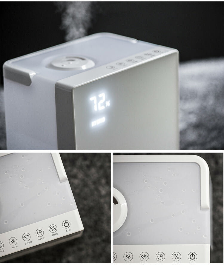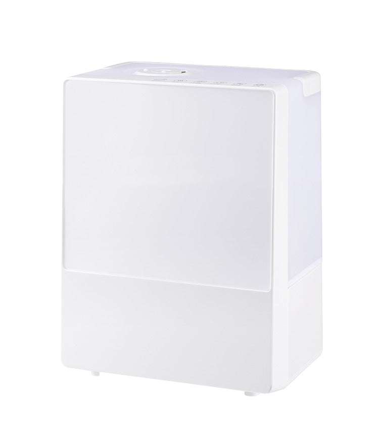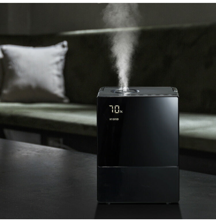 シンプルで無駄のない長方形のフォルムに、前面パネルの艶やかな光沢が存在感を放つ多機能ハイブリッド加湿器「スクエアミスト」。