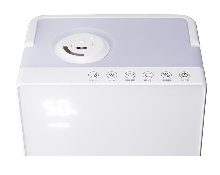 操作はタッチセンサー式を採用しており、運転モード切替、湿度設定(40-75%)、加湿量3段階調節、オフタイマー(1h-9h)など機能も充実。