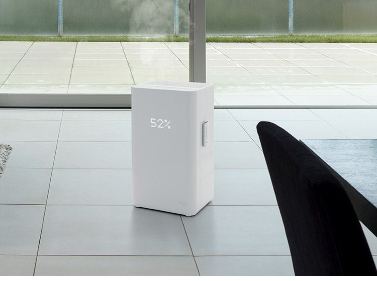 上から水を注ぐだけの簡単給水でお部屋全体に潤いを届けてくれる大容量タンク搭載の多機能スチーム加湿器「ハイジェニック」。タンク内の水をヒーターで沸騰させ、蒸気で加湿する仕組みなので冬場でもお部屋の温度を下げず、加熱して雑菌の繁殖を抑え衛生面にも優れています。湿度コントロール機能を搭載し、前面パネルに表示された大きめのLEDディスプレイで湿度やタイマー設定時間なども一目で分かります。リモコンは使わないときは本体側面にペタっとくっつけることができるのも嬉しいポイントです。電源コードは着脱式のマグネットプラグを採用しています。