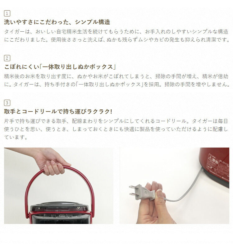 タイガー魔法瓶精米機5合RSF-A100Rレッド無洗米機能つき
