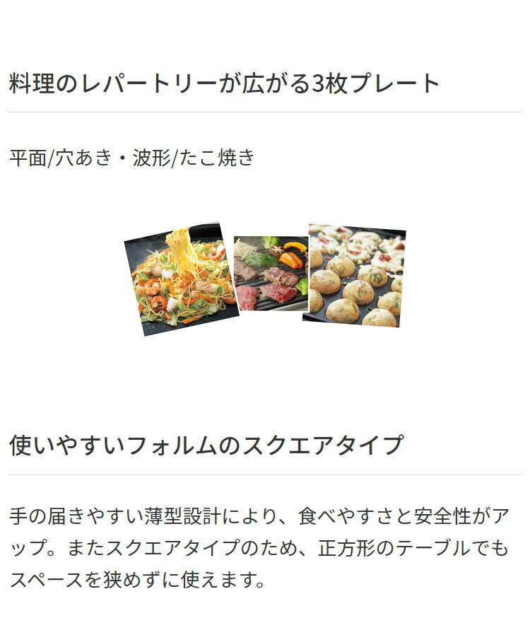 プレートの寸法(内寸)(約)(cm):波形35.0×28.5×2.2 平面35.0×28.0×2.4 たこ焼き35.0×27.6×1.5