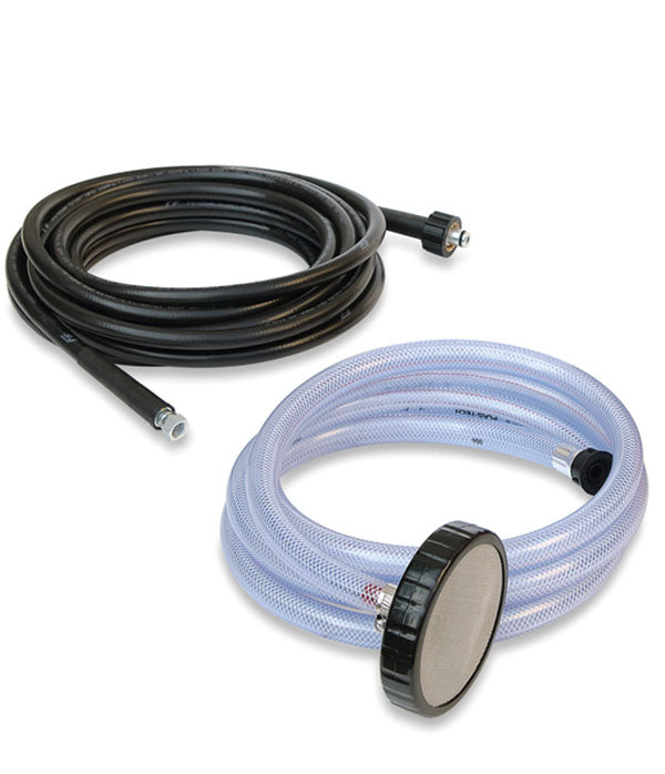 高圧ホース1/4インチ×9.5m、バリアブルランス、トリガーガン、クイックカプラジョイントM22、洗管ホース1/4インチ×10m、吸水ホース3m他