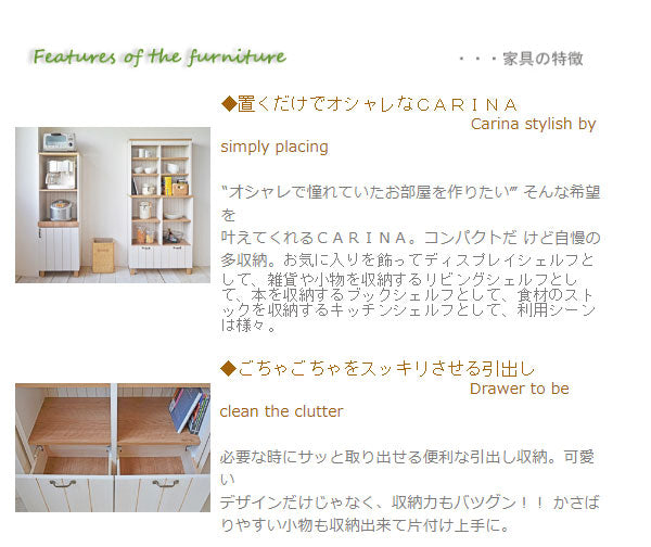日本製 オープンシェルフ カリーナ シェルフ オープンシェルフ ラック 大容量 リビング 引き出し ハイチェスト 棚 本棚 木製 家具 ラック ハイタイプ 高め ナチュラル アンティーク フレンチ おしゃれ かわいい 国産 (代引不可)