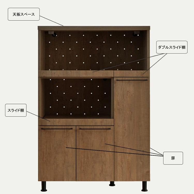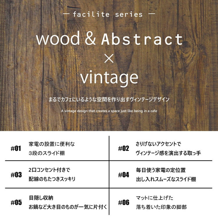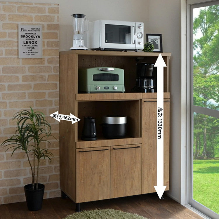 日本製 ファシリテ キッチンキャビネット 幅90 収納 レンジボード 食器棚 大容量 おしゃれ アンティーク 北欧 ヴィンテージ ロータイプ 木目調 スリム 国産(代引不可)