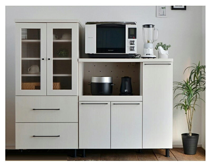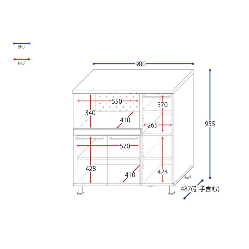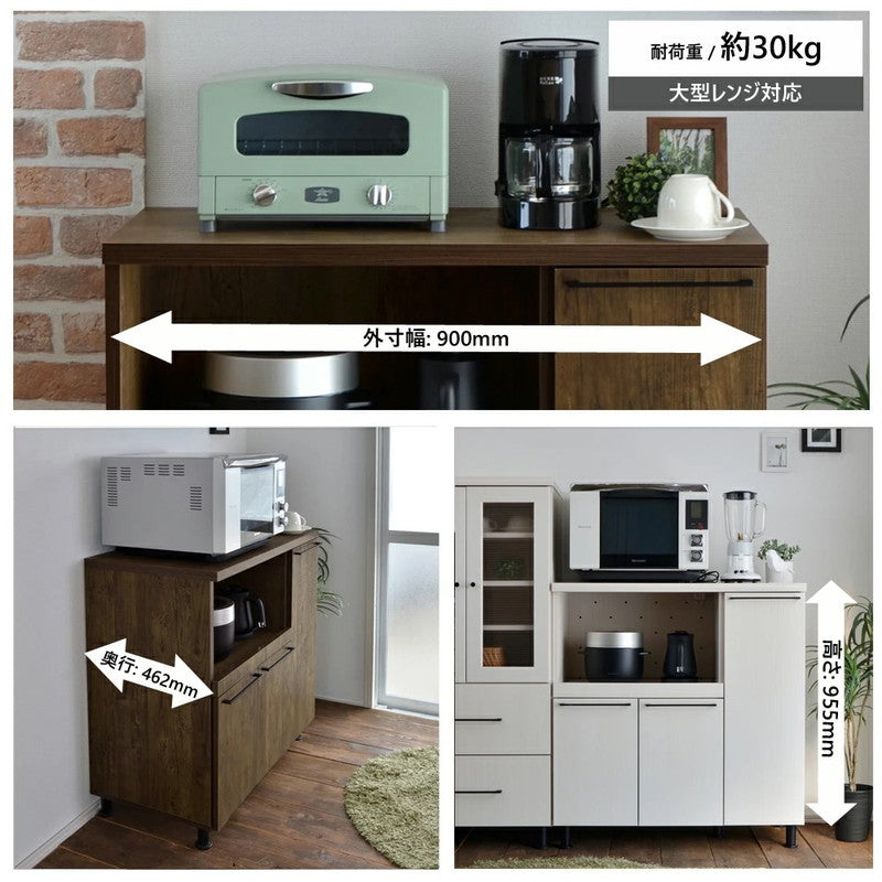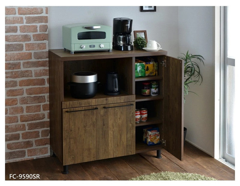 キッチンキャビネット 日本製 台所 レンジ台 食器棚 キャビネット キッチンカウンター スライド棚付レンジボード 扉付き収納庫 FC-9590SR(代引不可)