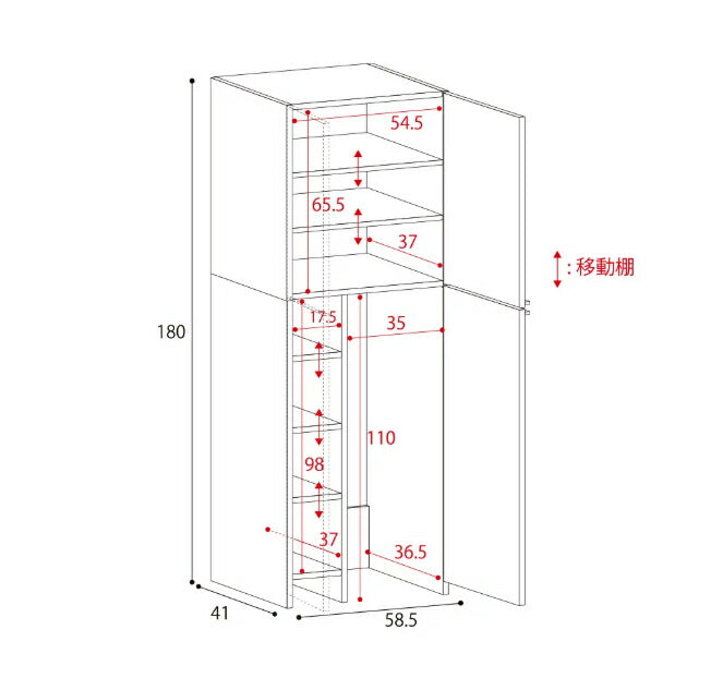 外寸:幅58.5×奥行41×高さ180cm