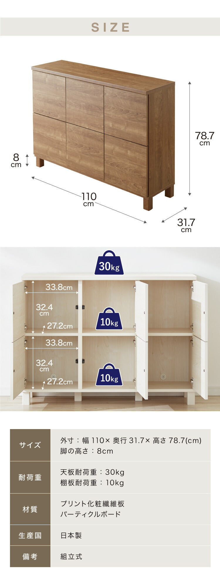 外寸:幅110×奥行31.7×高さ78.7(cm)