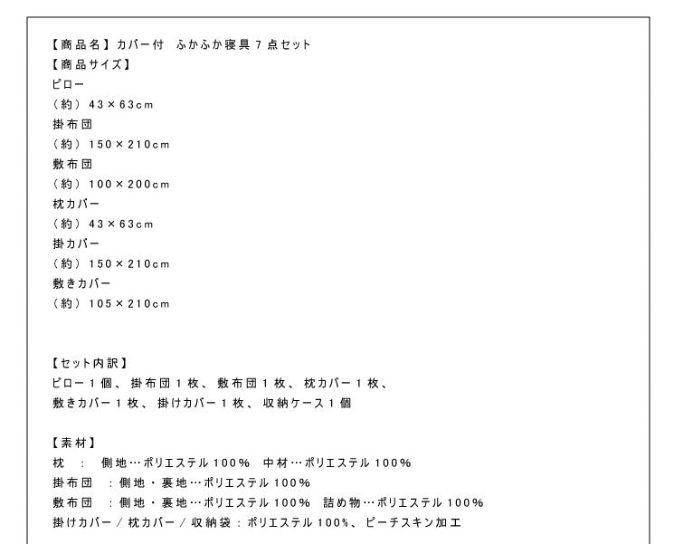 カバー付 ふかふか寝具7点セット