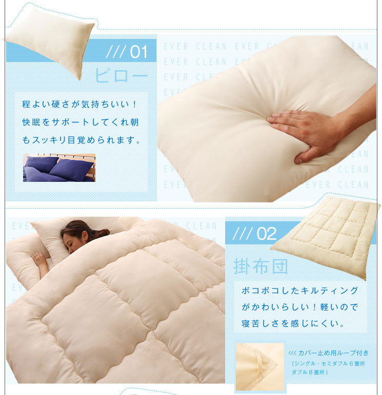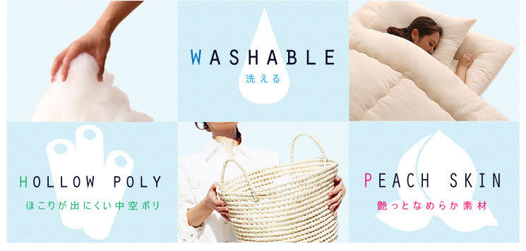 掛け布団/敷布団/枕:ポリエステル100%、ポリエステル100%、ピーチスキン加工、