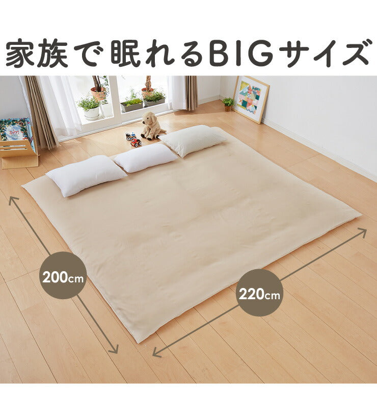 敷き布団 ファミリー 3人用 220×200 カバー付き カバー2枚付きテイジン製中綿使用 防ダニ 抗菌 防臭 大きい 大判 敷布団 ワイド敷布団 家族布団 しき布団 家族用 ごろ寝 お昼寝 テイジン