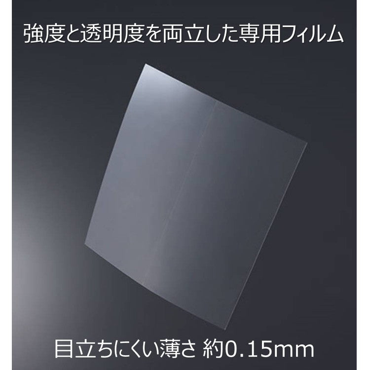 シール本体は強度と透明度を両立した専用フィルム。約0.15mmと薄いので、家具やキャビネットに貼っても目立たずご使用いただけます。また、製品の剥離シート外形を対象物端部に合わせると容易に適正設置位置に設置出来ます。