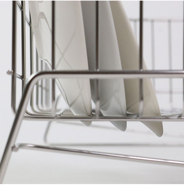 1.8cm間隔のワイヤーがお皿をキャッチします。洗い物が多いときでも綺麗に並べて乾かせます。