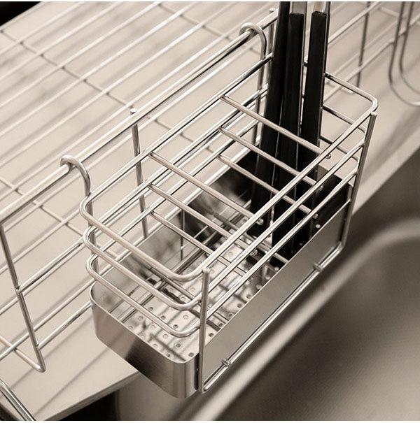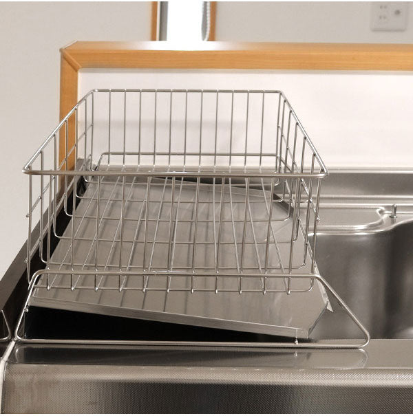 日本製 燕三条 シンクサイド 水が流れるスリム水切り 幅30cm 奥行55cm 箸立て グラスホルダー付き 水切りかご 水切りバスケット ステンレス製 国産 水切りかご(代引不可)