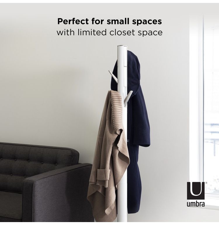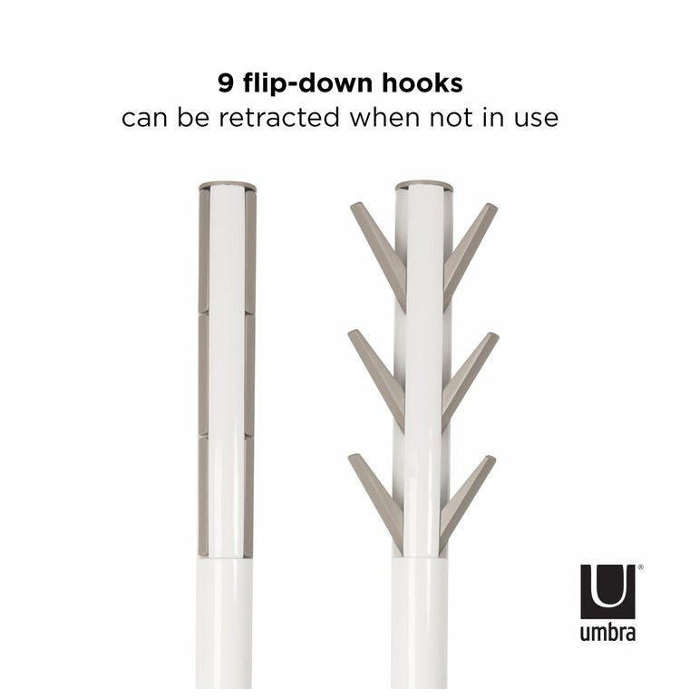 ●不要なフックはポールに収納することができます。衣類やバッグなどをたくさん掛けておくことはもちろん、掛けるものが少ないときは、スマートな見た目のコートラックとして。お部屋をすっきりと見せてくれます。