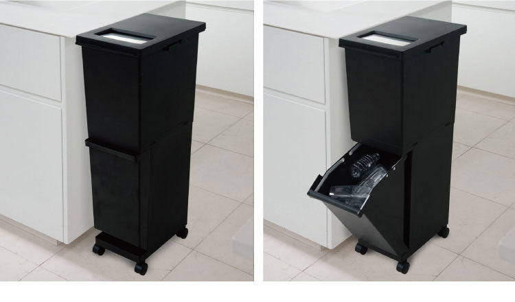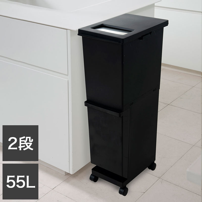 新輝合成株式会社 ユニード 分別スリム2段 55SBK ゴミ箱 コンパクト おしゃれ 55L ブラック(代引不可)