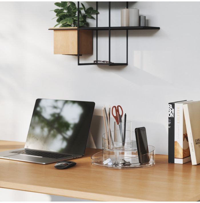 ●360度回転するオーガナイザーです。ベースが回転するので反対側に置いた物も容易に取り出すことができます。