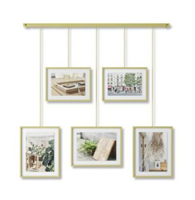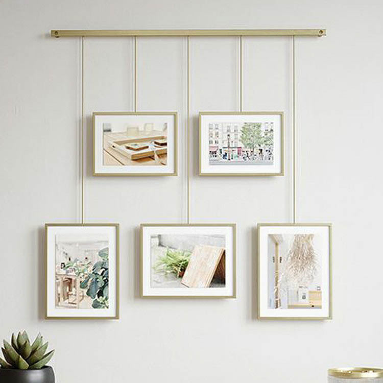 5個のフォトフレームを吊り下げたギャラリースタイルのフォトディスプレイ
